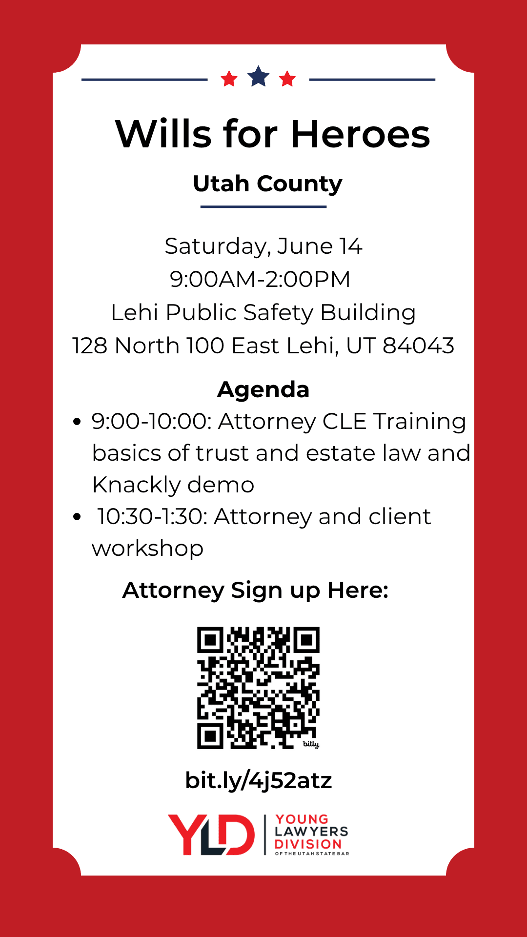 Join us for Wills for Heroes, a community event providing essential estate planning services to first responders and their families. Attorneys will offer free legal assistance in drafting wills and other vital documents.